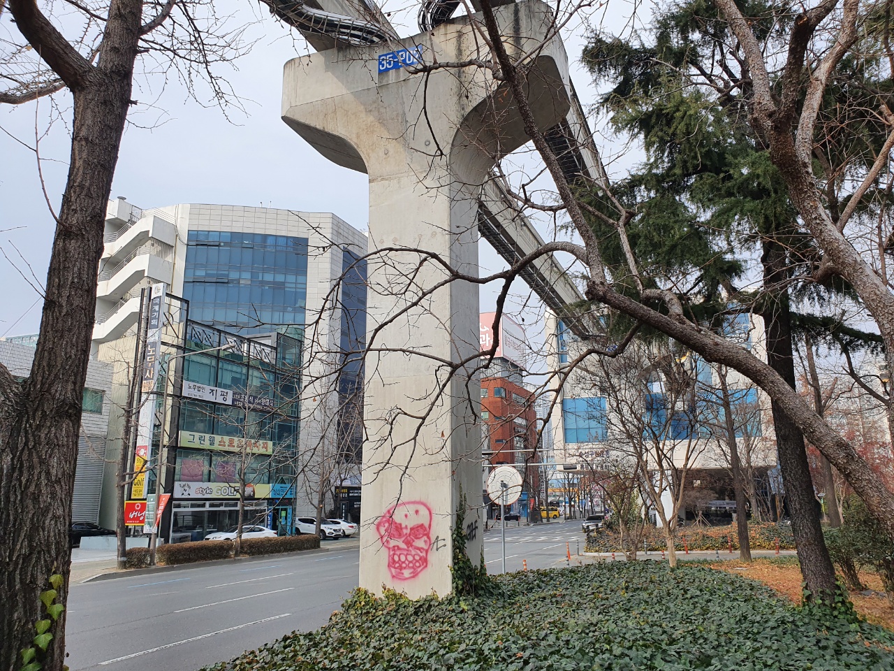 최근 대구도시철도 3호선 교각에 낙서 훼손이 잇달아 발생해 시민들의 눈살을 찌푸리게 하고 있다.