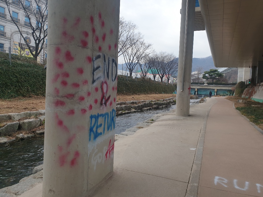 대구 시민들의 많은 사랑을 받으며 지역 랜드마크로 자리매김하고 있는 3호선 교각에 낙서가 발생해 공사에서는 즉시 제거했지만 자칫 지속적으로 발생하지 않을까 걱정하고 있다.