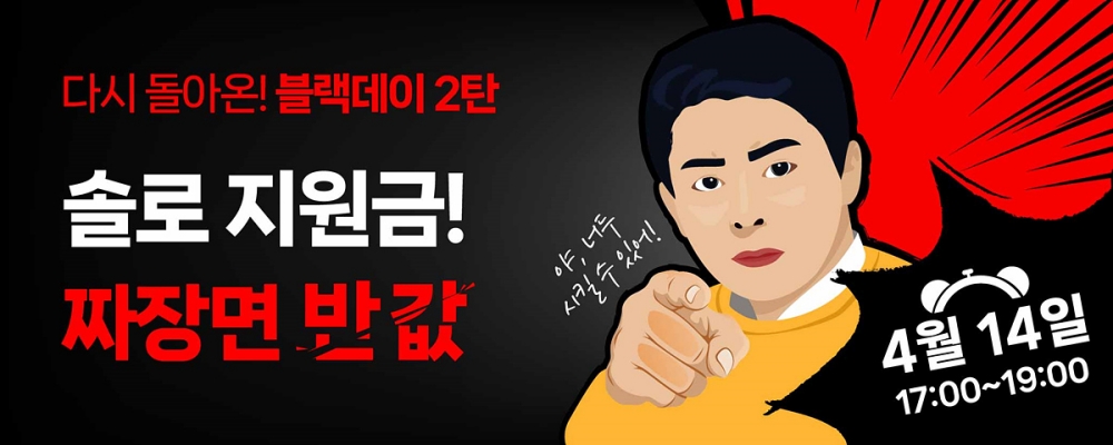 고객의 뜨거운 성원에 힘입어 1년 만에 다시 진행하는 ‘블랙데이 이벤트’는 대구로 42만 명 회원을 대상으로 하는 이벤트이며, 신규고객도 회원가입 시 참여가 가능하다. 4월 14일(금) 단 2시간(17:00~19:00)동안 타임 특가로 진행되며 짜장면 1그릇을 반값에 판매한다. 짜장면 메뉴는 1인 최대 4그릇까지 주문할 수 있다.