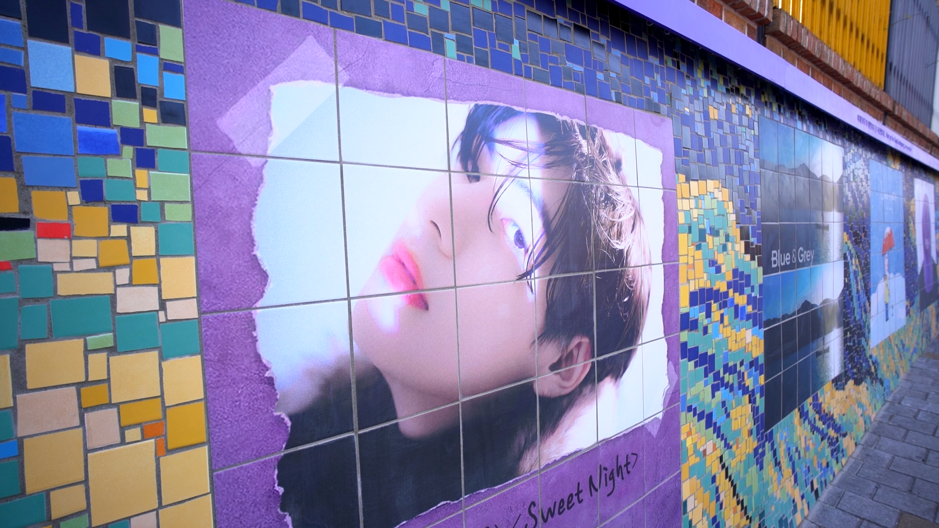 뷔 벽화거리는 뷔가 좋아하는 반 고흐의 '별이 빛나는 밤'을 배경으로 뷔의 음악작업과 스토리로 꾸며졌다.