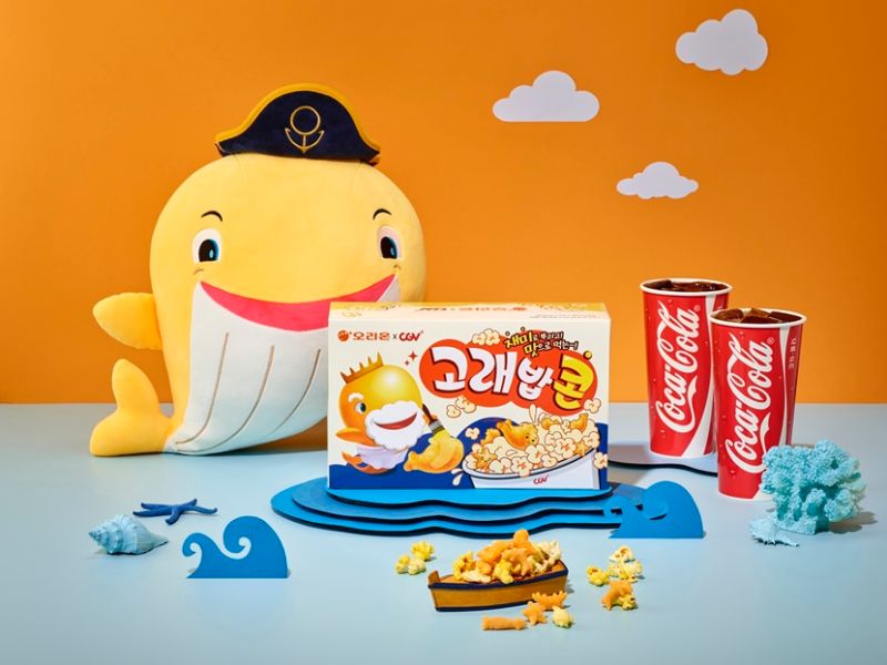 CGV는 오리온의 스테디셀러인 ‘고래밥’과 콜라보한 신메뉴 ‘고래밥콘’을 출시한다고 8일 밝혔다. ‘고래밥콘’은 CGV의 대표 메뉴인 팝콘 위에 오리온이 이달 출시한 ‘달콤치즈맛 고래밥’을 토핑으로 올려 제공하는 새로운 조합의 팝콘이다.