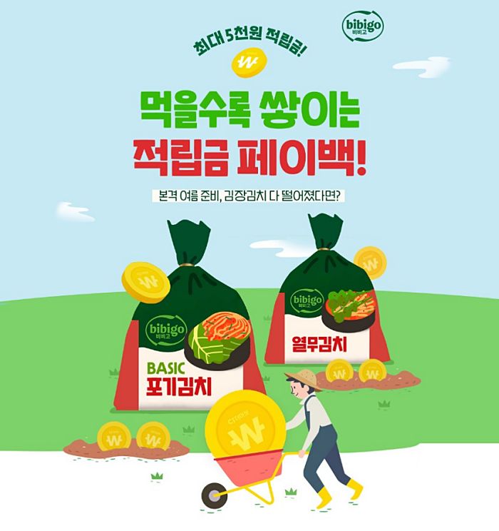 기획전 기간 비비고 김치를 구매한 고객에게 결제 금액의 일부를 CJ더마켓 적립금으로 되돌려주는 페이백 이벤트도 진행한다. 행사상품 4만원 이상 구매 시 결제 금액의 3%(최대 3천원)를, 8만원 이상 구매 시 5%(최대 5천원)를 적립금으로 지급한다.