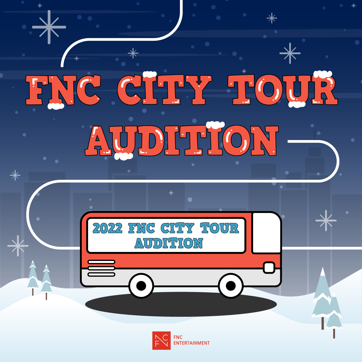 ‘FNC 씨티 투어 오디션’은 2003년에서 2011년생 청소년이라면 국적이나 성별과 관계없이 누구나 지원 가능하며 모집 분야는 보컬, 랩, 댄스, 연기, 비주얼의 총 5개 분야로 구분된다. 개인 혹은 단체로 지원할 수 있으나, 단체로 지원하는 경우에도 합격자 선정은 개별로 진행된다. 오디션 당일 선착순으로 현장 접수를 받으며, 오디션 시작 전 한 시간 동안만 접수 가능하다. 오디션 시작 시각과 접수 가능 시각이 지역별로 상이하니 사전에 확인이 필요하다.