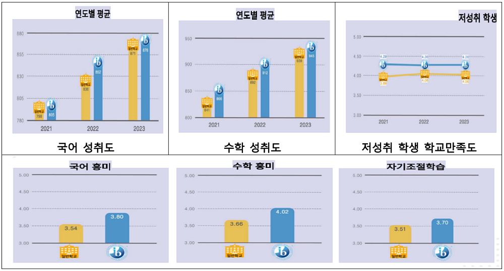 이번 연구는 2021학년도 초등학교 3학년이 2023학년도 5학년으로 성장한 종단적 변화 추이를 분석하였으며, IB PYP 월드스쿨 학생의 국어, 수학 성취도가 일반학교에 비해 유의하게 높고 인지, 행동, 동기, 사회정서적 영역에서도 긍정적 효과가 나타난 것으로 조사됐다.