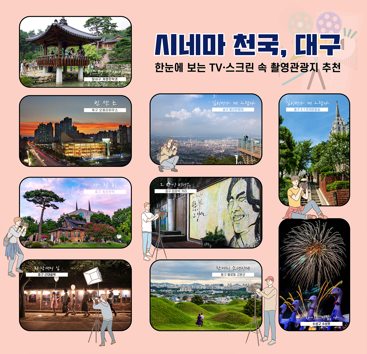 대구시와 (재)대구관광재단은 최근 전 세계적인 인기를 끄는 한국영화나 드라마 등 'K-Culture(케이-컬쳐)' 붐에 힘입어, 대구의 영화·드라마 속 명장면을 찾아서 떠나는 '시네마트래블 in 대구' 한류여행 가이드북을 발간했다.