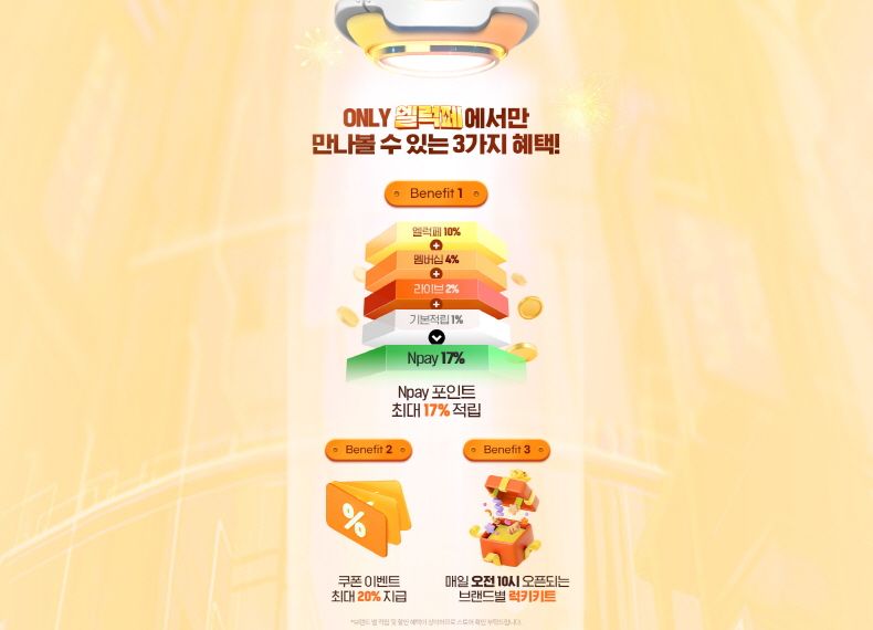 또 스토어 별로 구매 금액의 최대 20% 할인 쿠폰을 지급하고, 네이버 N포인트 최대 17% 추가 적립 혜택을 누릴 수 있다. 브랜드 별로 정한 일정금액 이상을 구매하면 각 브랜드 화장품 샘플과 파우치, 브러시 등 다양한 사은품을 한정수량으로 받아볼 수 있다.