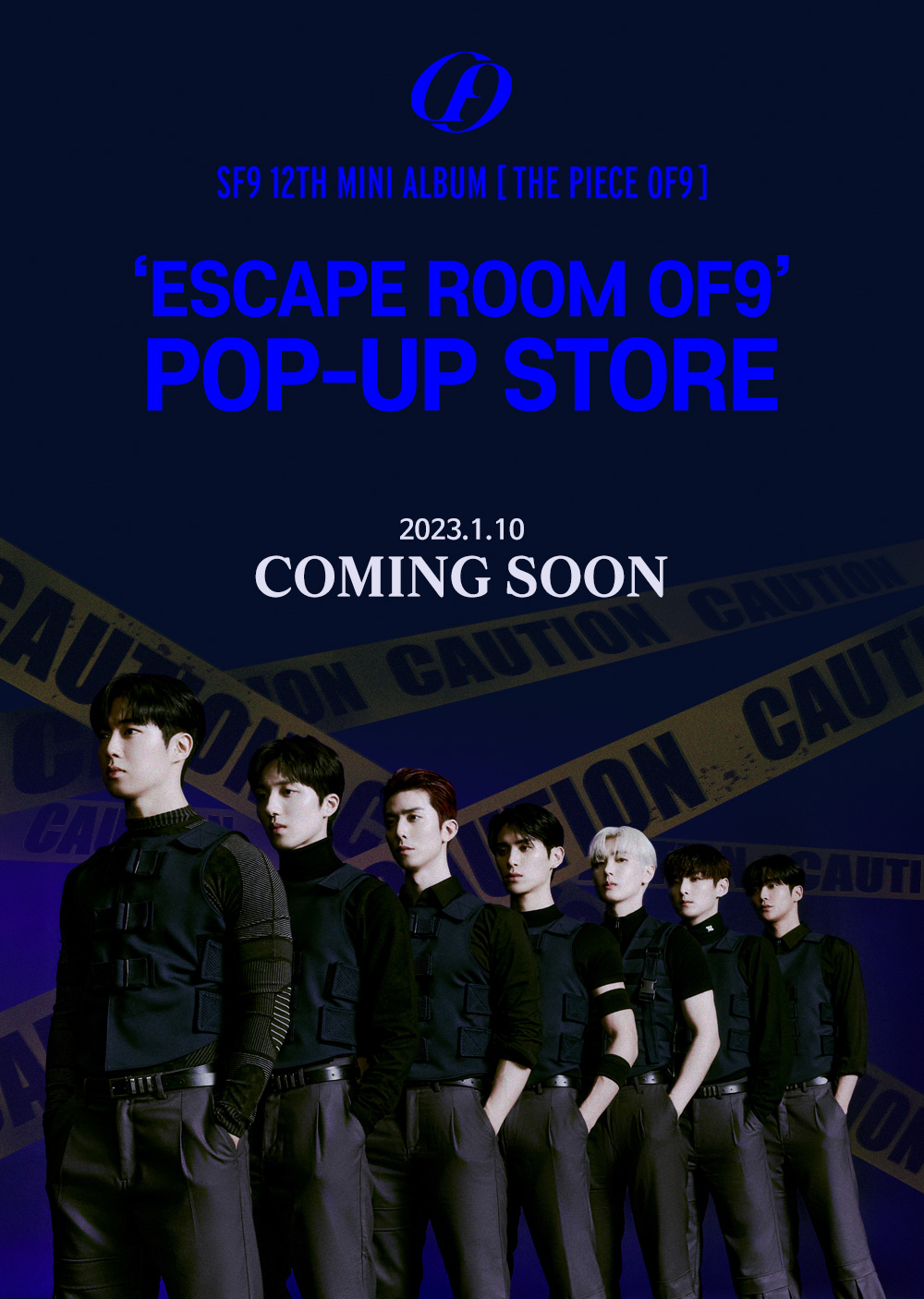 SF9은 오는 1월 10일부터 24일까지 총 2주간 롯데백화점 영플라자 명동점 지하 1층 팔레트 매장에서 ‘ESCAPE ROOM OF9 POP-UP STORE’를 운영한다.