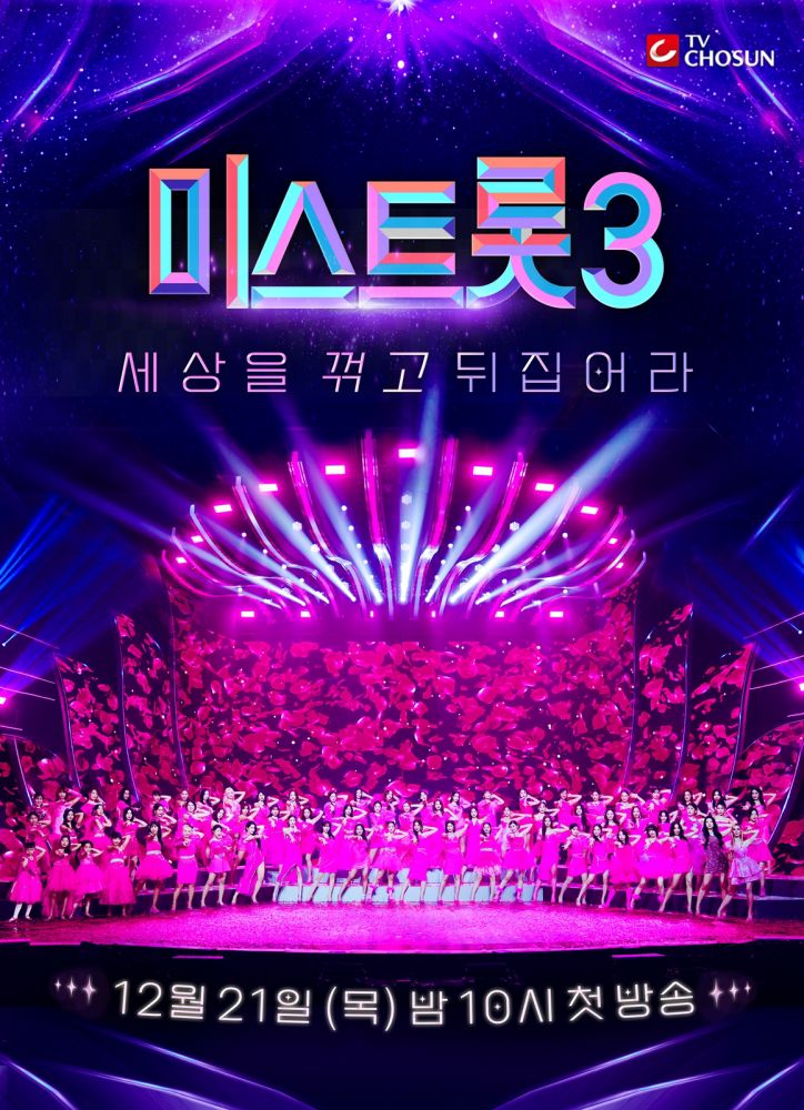 대한민국 트로트 여제의 거룩한 계보를 이어가며 새로운 전설을 쓸 TV조선 ‘미스트롯3’는 오는 12월 21일 밤 10시 첫 방송된다.